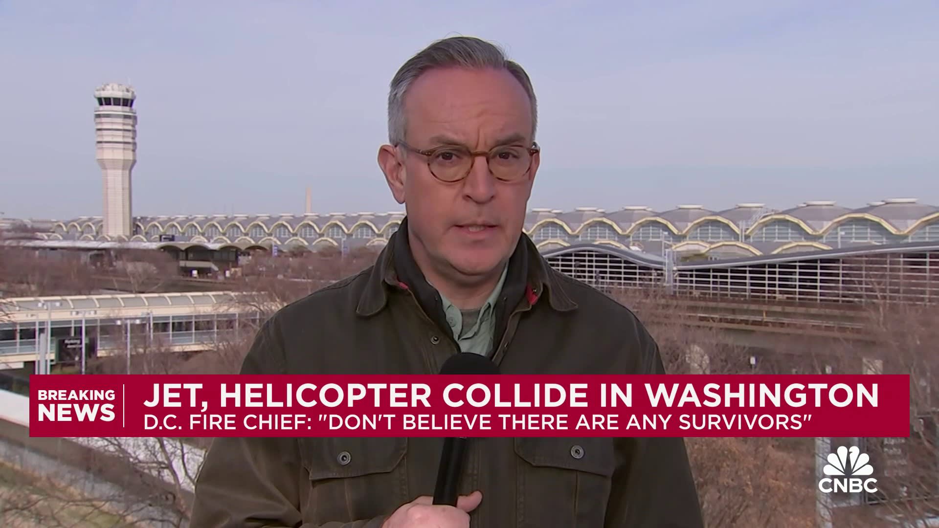 There were no survivors after an American Airlines regional jet with 64 people aboard collided with a Black Hawk military helicopter moments before the airplane was set to land at Washington, D.C.’s Ronald Reagan Washington National Airport on Wednesday night, officials said. The accident was the worst air disaster in the U.S. since 2001.