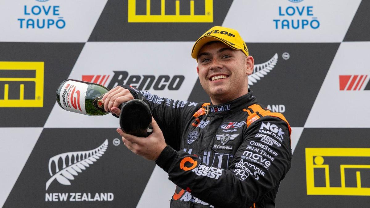 After championship leader Brodie Kostecki cantered to victory from pole in the first race of the Taupo round on Saturday, proud Kiwi Wood hung tough as Broc Feeney and Chaz Mostert pressed to knock off the pole-sitter.